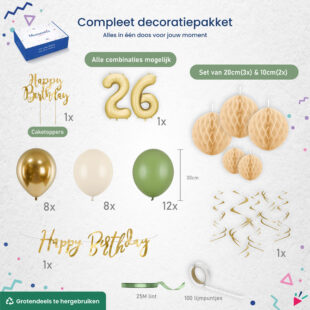 Zo hoef je niet zelf losse decoratie te zoeken of kleuren te combineren. Alles is al afgestemd zodat jouw feest er direct stijlvol uitziet.