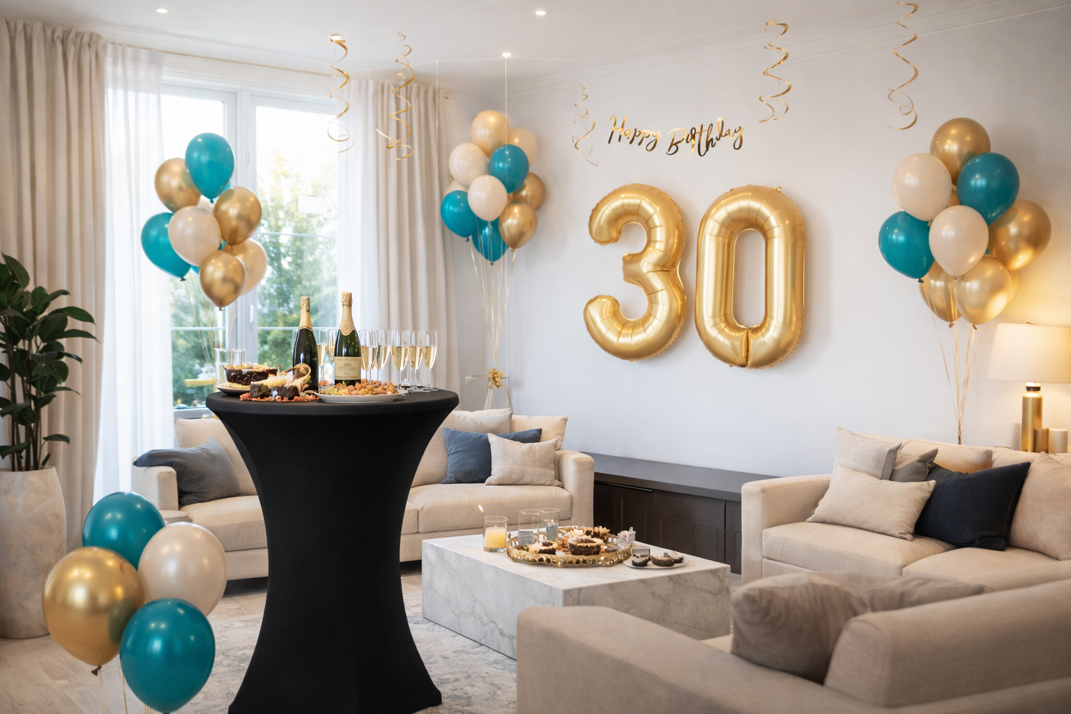 Alles wat je nodig hebt voor een stijlvolle verjaardag in lagoon blue en goud. De kleuren en details zijn zorgvuldig op elkaar afgestemd. Je creëert direct sfeer, zonder zelf te hoeven combineren.