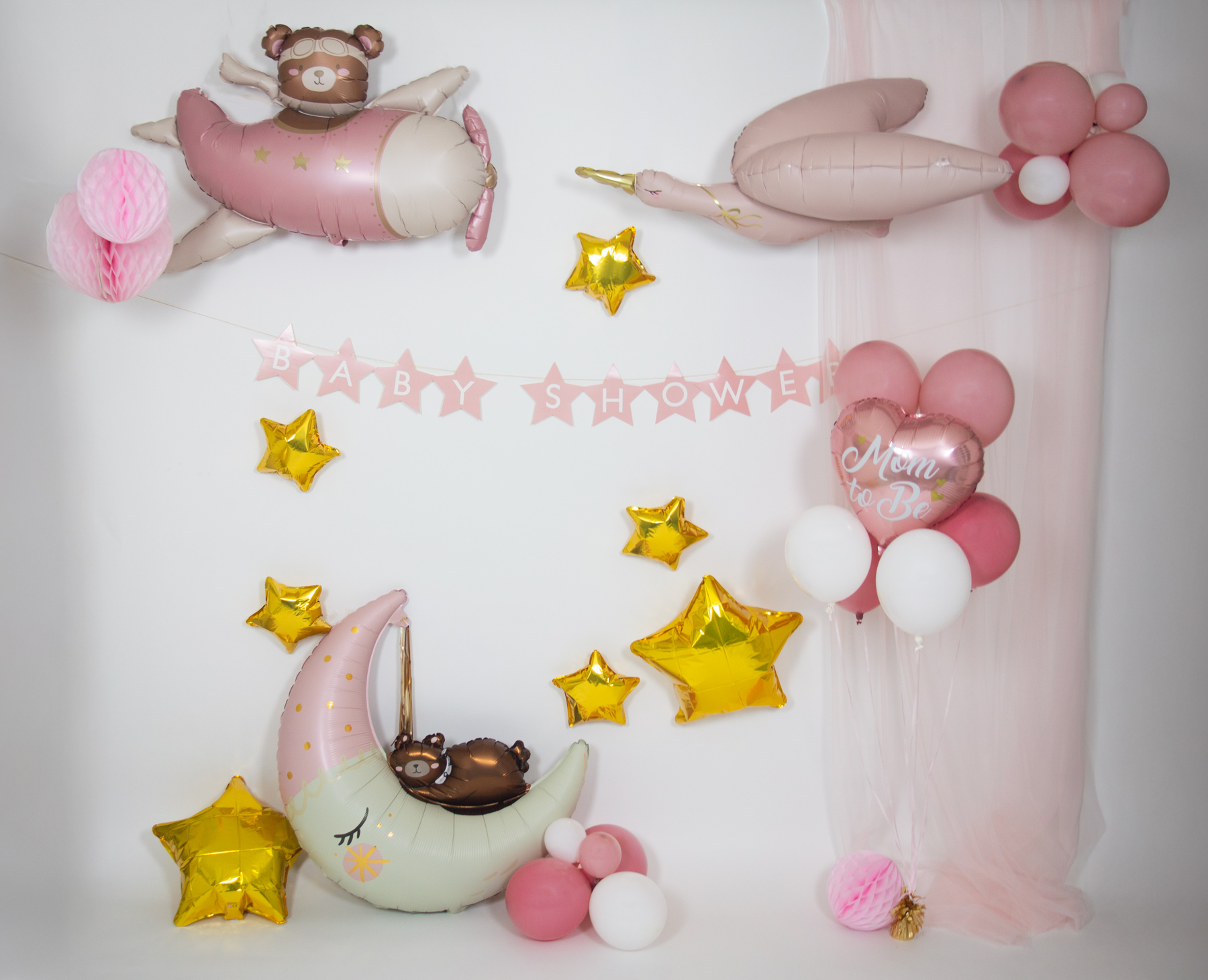 Elk pakket bevat een complete mix van ballonnen in verschillende formaten, luxe folieballonnen als blikvanger, bijpassende honeycombs voor diepte in de decoratie, een babyshower banner, een mom-to-be sjerp, cupcake toppers en lint en lijmpuntjes voor de afwerking. Alles wat je nodig hebt om in één keer klaar te zijn, zonder dat je nog ergens anders iets bij hoeft te halen.